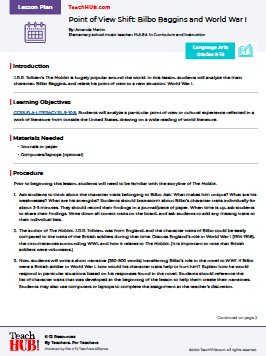 J.R.R. Tolkien’s The Hobbit is hugely popular around the world. In this lesson, students will analyze the main character, Bilbo Baggins, and relate his point of view to a new situation: World War I.