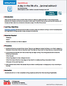 What would it be like to be an animal? What would your days and nights look like? In this writing prompt, students will choose an animal and write about what a day in the life of that animal would be like.