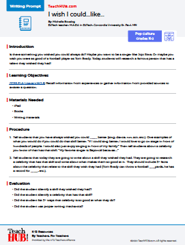 Is there something you wished you could always do? Maybe you want to be a singer like Jojo Siwa. Or maybe you wish you were as good of a football player as Tom Brady. Today, students will research a famous person that has a talent they wished they had!