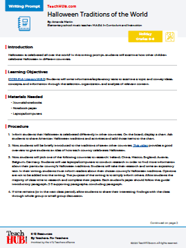 Halloween is celebrated all over the world! In this writing prompt, students will examine how other children celebrate Halloween in different countries.